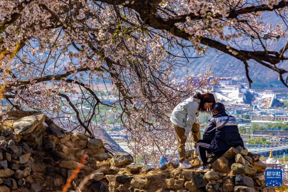 ??近日,西藏拉薩市城關(guān)區(qū)慈覺林社區(qū)的一片古桃樹進入盛花期,因其正對著布達拉宮,成為游人拍照打卡的“網(wǎng)紅”地。