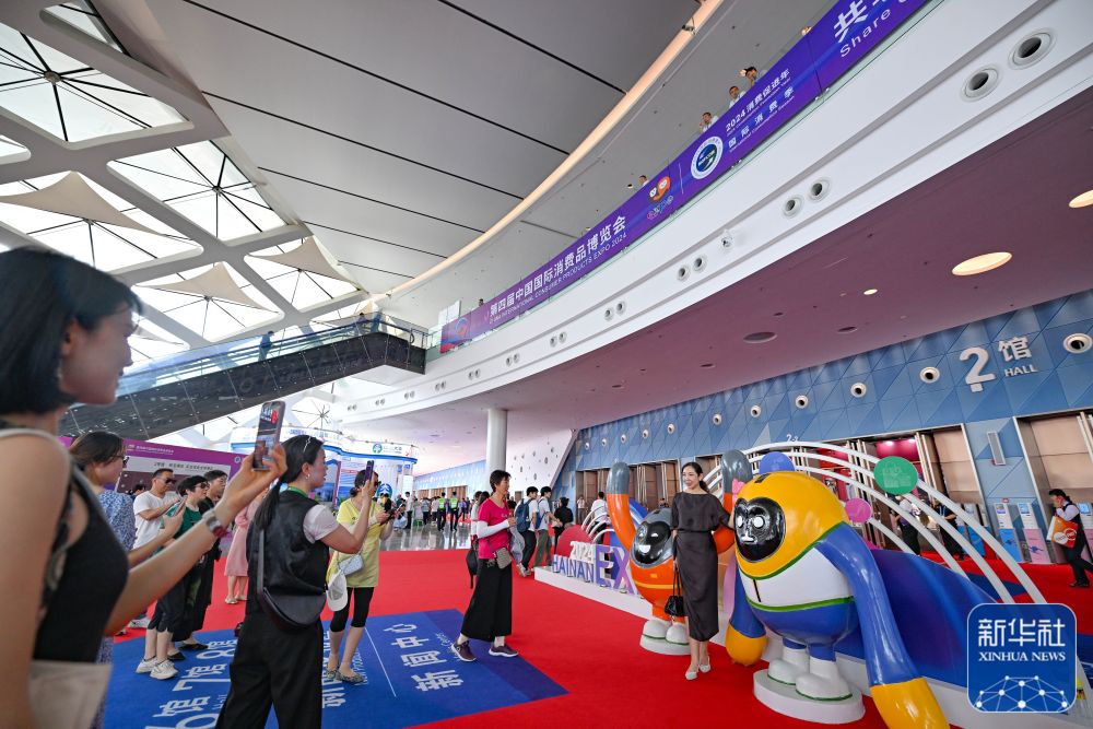 觀眾在第四屆消博會現場拍照留念。新華社記者王楚天 攝