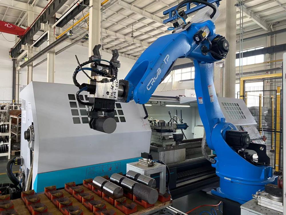 在奧瑞(天津)工業(yè)集團(tuán)股份有限公司,配重軸自動加工設(shè)備正在抓取零部件。新華社記者 尹思源 攝