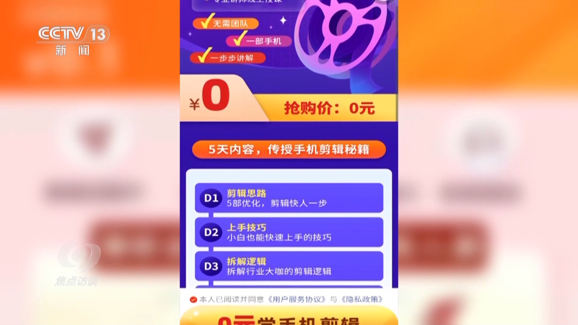 近年來,線上學(xué)習(xí)的普及程度越來越高,行業(yè)不斷發(fā)展壯大的同時(shí),也衍生出一些亂象。部分所謂的培訓(xùn)機(jī)構(gòu)利用消費(fèi)者急于學(xué)技、創(chuàng)業(yè)的心理制造焦慮,打著“0元學(xué)”的旗號(hào),聲稱可以短期速成、財(cái)富增值。這種培訓(xùn)靠譜嗎?真的可以不用花錢就能學(xué)到本事,然后就能掙錢嗎?所謂的“0元學(xué)”里暗藏著哪些套路?