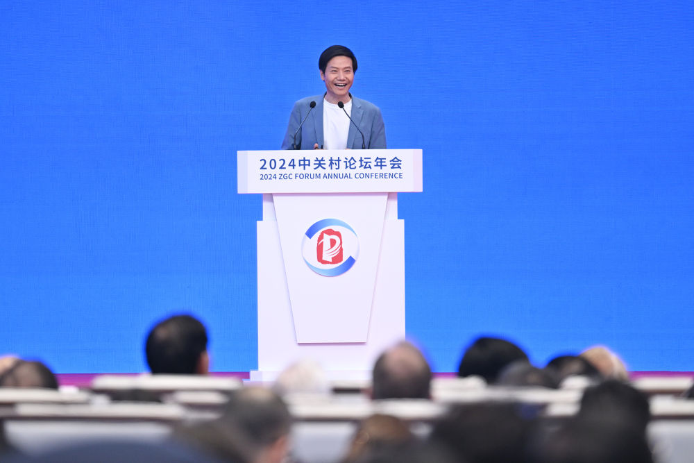 2024年4月25日,小米集團創(chuàng)始人、董事長兼首席執(zhí)行官雷軍在2024中關(guān)村論壇年會上發(fā)言。
