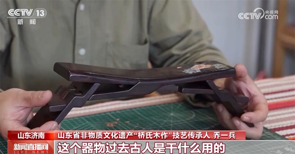 山東省非物質(zhì)文化遺產(chǎn)“橋氏木作”技藝傳承人喬一兵介紹:“它本身是一整塊木頭六個面,通過鋸和鑿形成一個器物。這個器物過去古人是干什么用的?當(dāng)枕頭用的,也可以當(dāng)?shù)首佑茫畲蟮奶攸c是可以折疊,攜帶非常方便,傳說是魯班發(fā)明的。和眾多的優(yōu)秀的傳統(tǒng)技藝一樣,它深層次代表的是中國的一些思想、一些哲學(xué)、一些文化在里邊,魯班枕的核心是平衡和和諧,我覺得我很有必要把它傳承下來,發(fā)揚光大?!?/p>