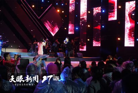 隨著夜幕降臨,聚光燈照亮舞臺,流光溢彩、星光熠熠,舞臺四周,燈光變幻如夢般光彩,美輪美奐。雖然天空下著淅淅小雨,《livepower再回首》經(jīng)典演唱會依然在大家的期待中拉開了序幕。經(jīng)典的旋律、超炫的巨型舞臺、震撼的燈光音效,讓音樂與溶洞再次在這個有著億萬年歷史的溶洞相遇。激情與寧靜交織,古老與現(xiàn)代碰撞,給樂迷們帶來不少驚喜,讓大家忘卻了雨夜的微冷,身體和心靈隨著律動擺動、起舞。