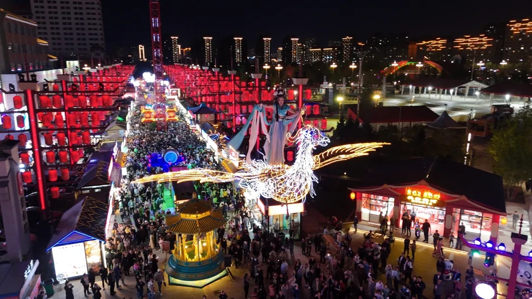“五一”期間,梅河口東北不夜城寬敞的街區(qū)人流如織,熱鬧非凡。來自四面八方的游客齊聚東北不夜城打卡拍照。孫池 攝