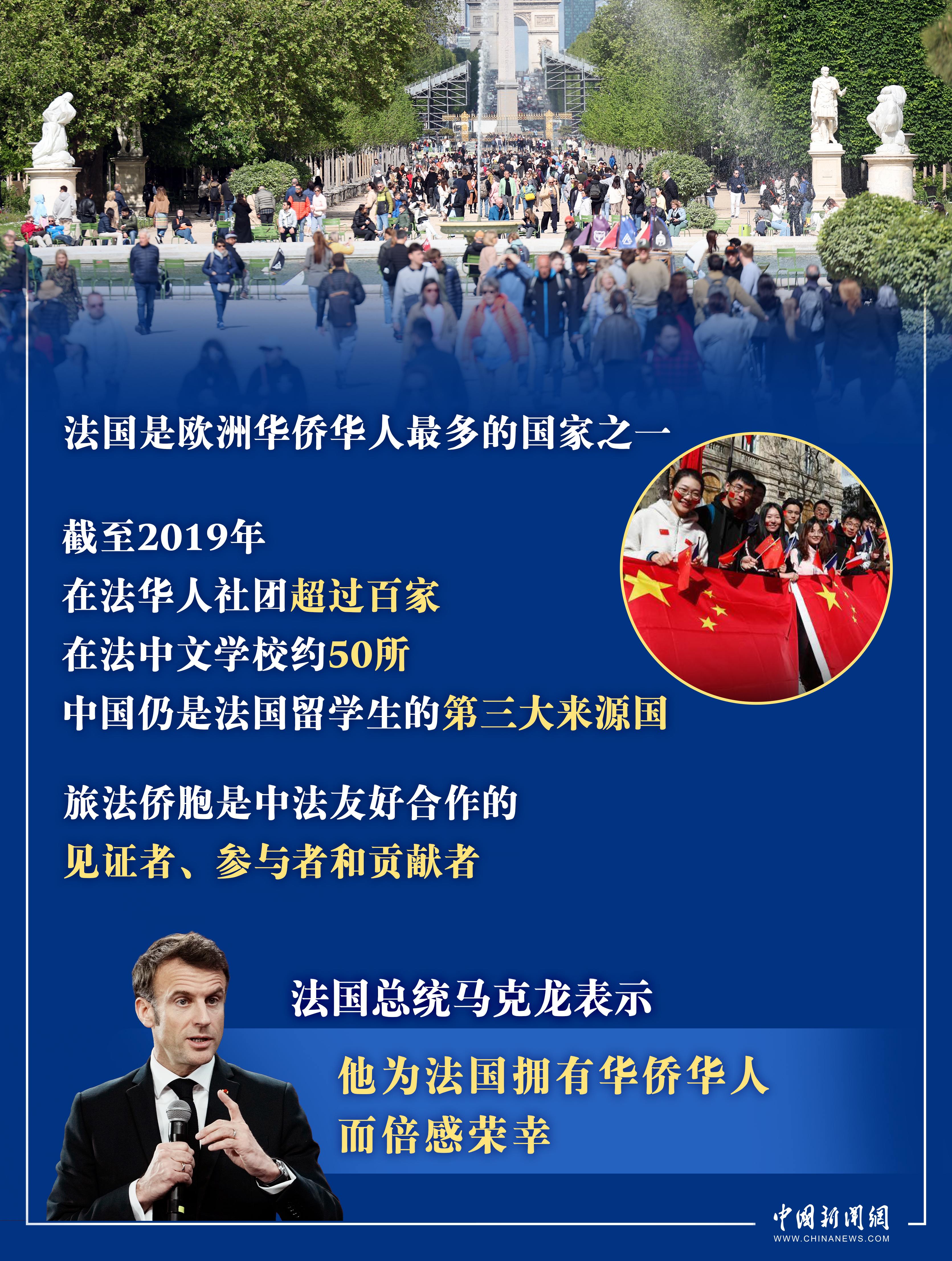 法國華僑華人會主席任俐敏表示,馬克龍總統(tǒng)曾到我們的“娘家”去夸贊我們,這很值得我們自豪。