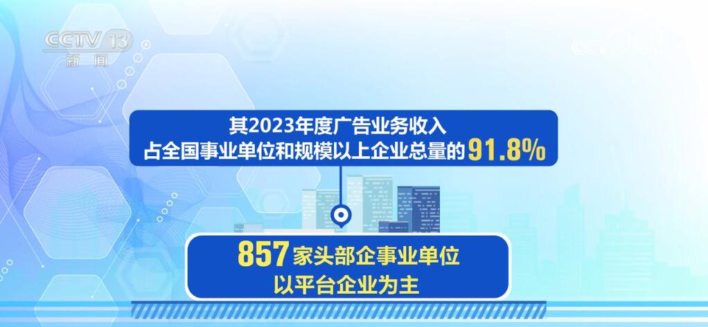 據(jù)了解,857家頭部企事業(yè)單位以平臺企業(yè)為主,數(shù)據(jù)顯示其2023年度廣告業(yè)務(wù)收入占全國事業(yè)單位和規(guī)模以上企業(yè)總量的91.8%。其中,頭部平臺企業(yè)廣告業(yè)務(wù)收入占其營業(yè)收入50%以上。平臺企業(yè)的廣告業(yè)務(wù)不僅帶動廣大中小微廣告企業(yè)構(gòu)建起產(chǎn)業(yè)鏈,也為其開展人工智能、新能源、云計(jì)算等技術(shù)創(chuàng)新提供了資金保障。