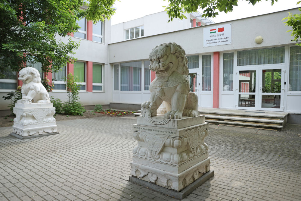 這是匈中雙語(yǔ)學(xué)校校門(2024年5月3日攝)。