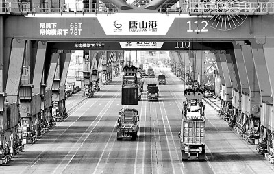 河北唐山港積極打造國際物流港。圖為工人在京唐港區(qū)集裝箱碼頭操作吊裝設備。新華社發(fā)