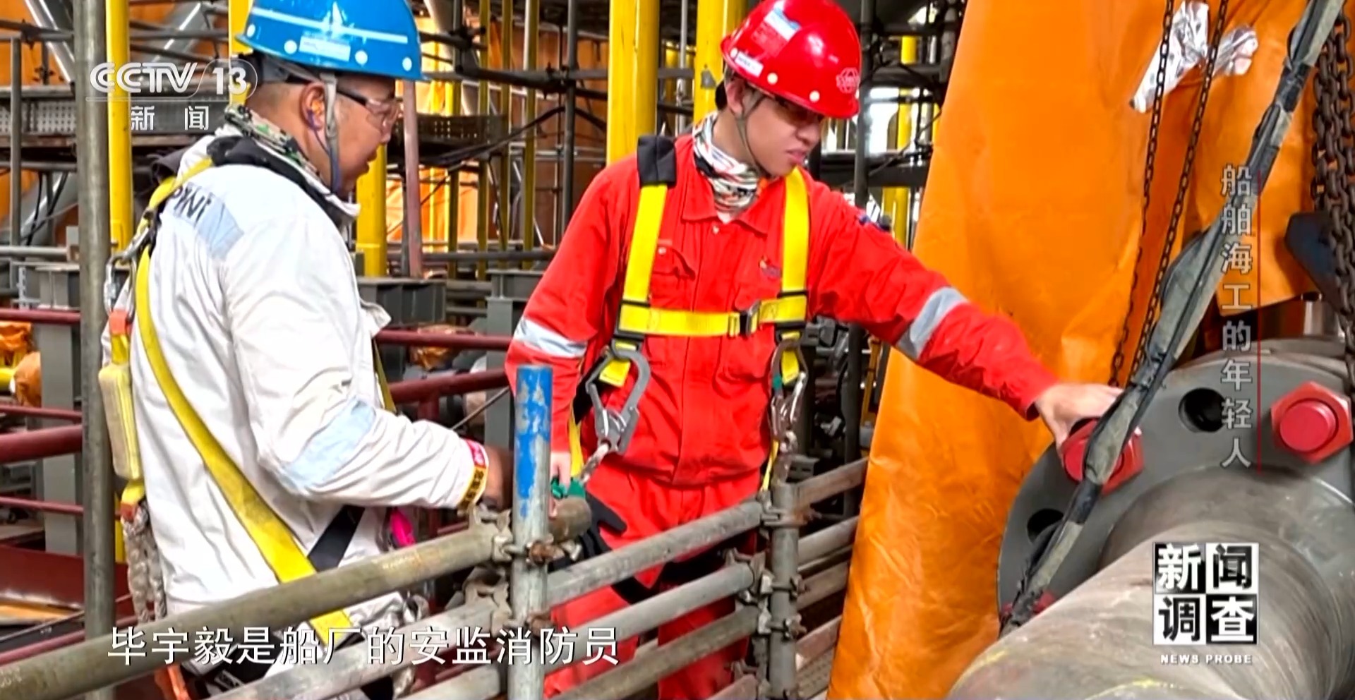 啟東中遠(yuǎn)海運(yùn)海洋工程有限公司安監(jiān)消防員 畢宇毅:那個船非常漂亮,也是我進(jìn)入這個行業(yè)第一個學(xué)習(xí)的項(xiàng)目,在一個300多米的船上,每天能走兩萬步。等到項(xiàng)目交付的那一刻,等這個船嶄新擺在碼頭的時候,大家都感覺非常自豪。那一刻你也不知道看的是什么,可能看的就是過去兩年半的青春奉獻(xiàn)在了這個大國重器上面。