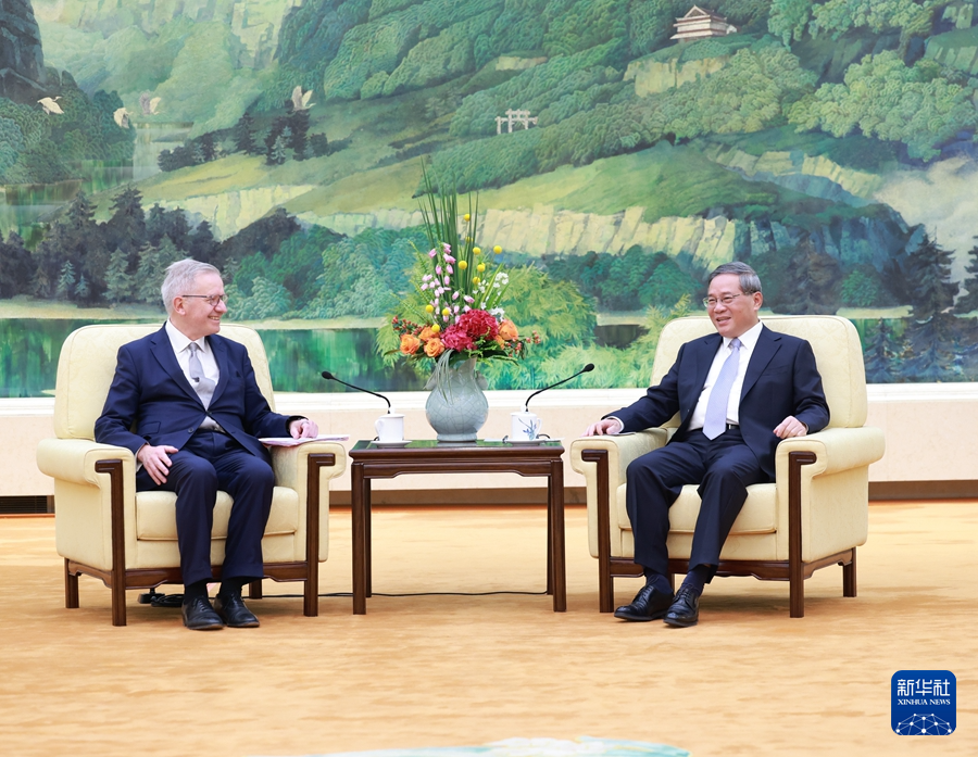 國務院總理李強5月15日上午在北京人民大會堂會見英中貿(mào)易協(xié)會主席古沛勤率領的英中貿(mào)協(xié)訪華團。
