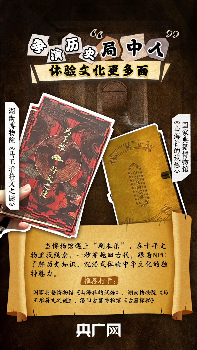 在國(guó)家典籍博物館的甲骨文展覽中尋找線(xiàn)索、到湖南省博物館破解“馬王堆符文之謎”……“五一”假期,不少人在博物館進(jìn)入“劇本殺”的世界,跟著NPC了解歷史知識(shí),沉浸式體驗(yàn)中華文化的魅力。