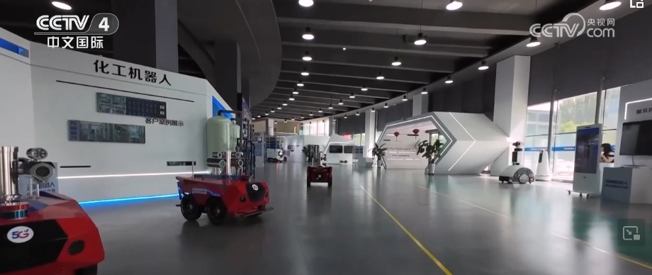 在寧夏中衛(wèi)市一家化工新材料企業(yè)的硝化車間內(nèi),一臺輪式機(jī)器人和一臺掛軌機(jī)器人正在對車間內(nèi)的設(shè)備進(jìn)行著巡查、巡檢等工作?;C(jī)器人的使用,不但使工作精準(zhǔn)度大幅提升,效率更是較人工提高了五倍以上。