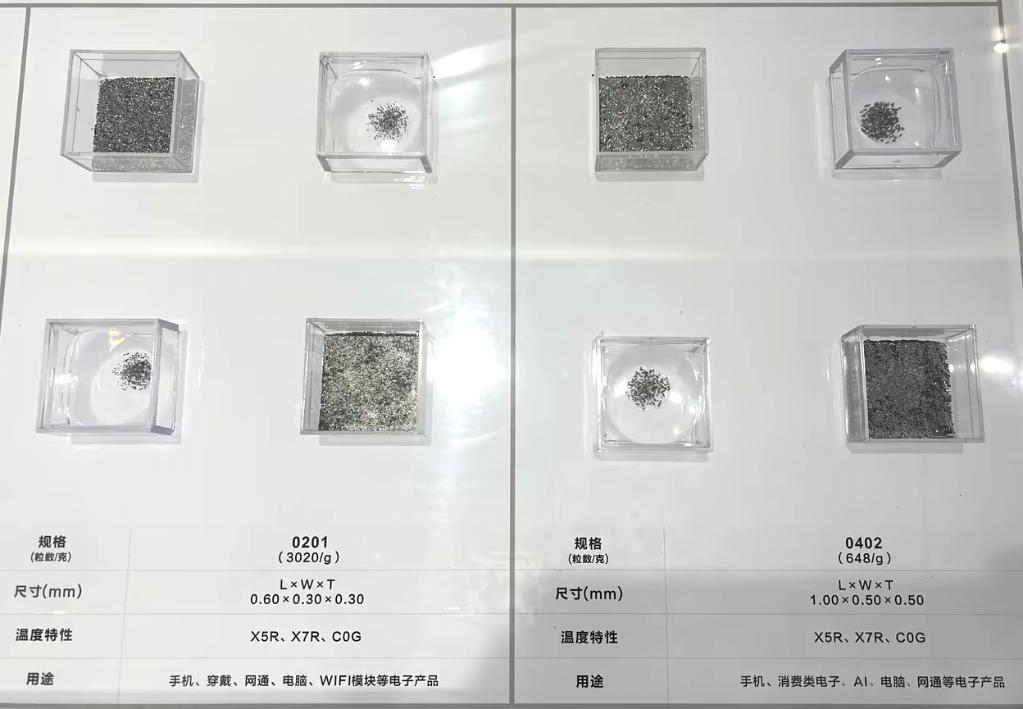 風華高科生產的部分電容產品,用于手機、消費類電子、AI等電子產品。受訪企業(yè)供圖