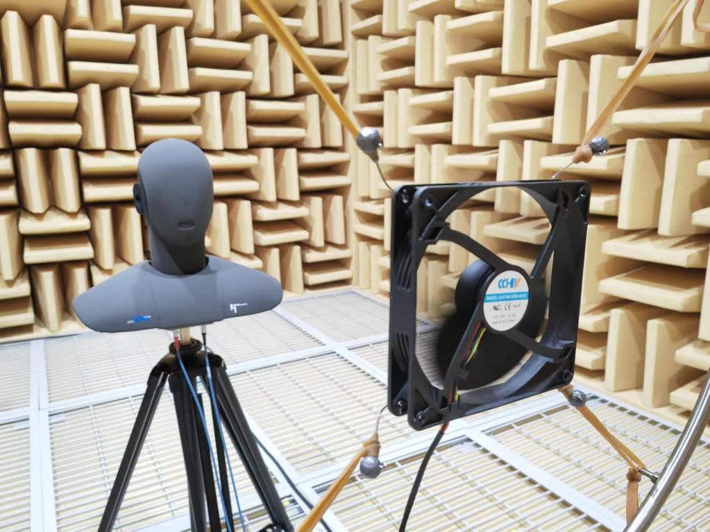 5月19日,晟輝科技實驗室內,一款風機正在接受噪音檢測。新華社記者謝?,?攝