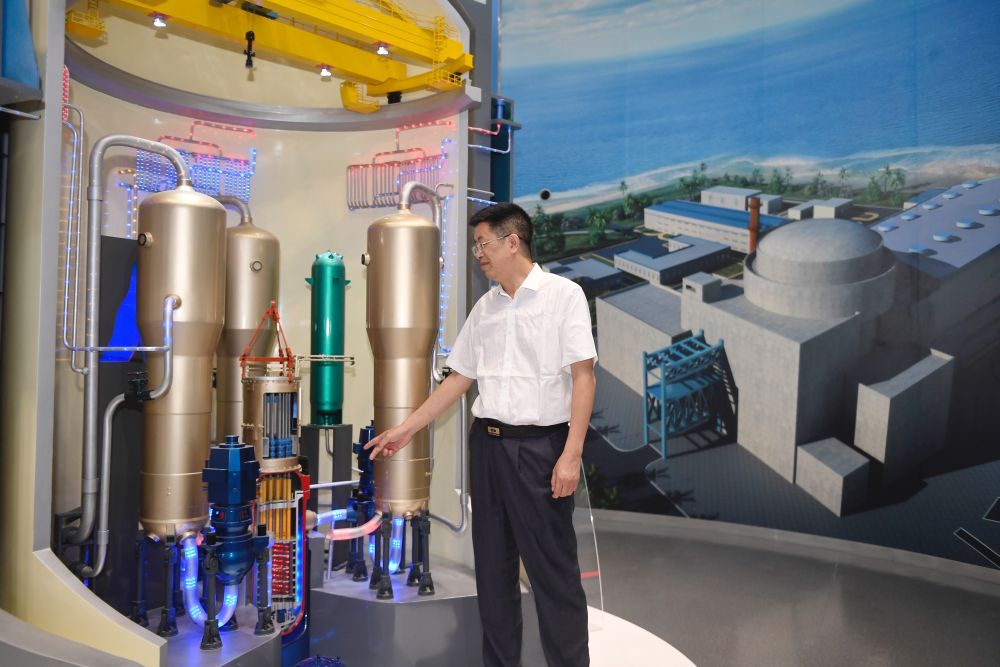 5月24日,在位于成都的中國核動力研究設(shè)計(jì)院內(nèi),鐘元章在介紹“華龍一號”模型。