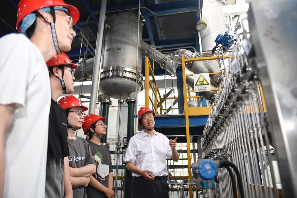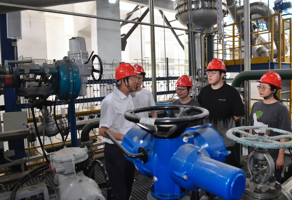 5月24日,在位于成都的中國核動力研究設(shè)計(jì)院內(nèi),鐘元章(右一)與團(tuán)隊(duì)年輕人在試驗(yàn)臺架上交流。