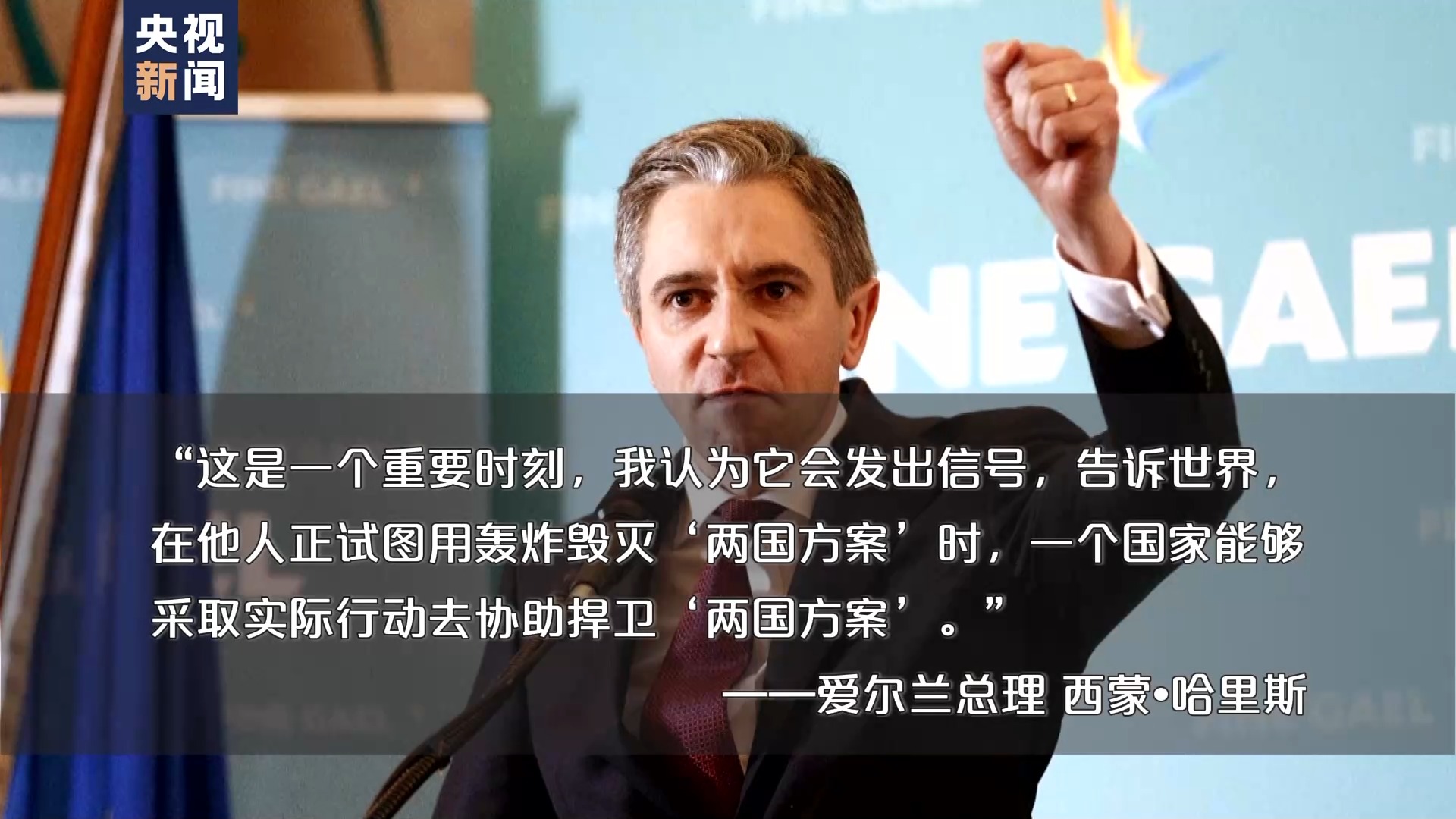 愛爾蘭總理 西蒙·哈里斯:我們說過承認(rèn)巴勒斯坦國(guó)的時(shí)刻越來越近了,現(xiàn)在這一時(shí)刻終于到了。這對(duì)愛爾蘭和巴勒斯坦來說都是歷史性的一天,重要的一天。