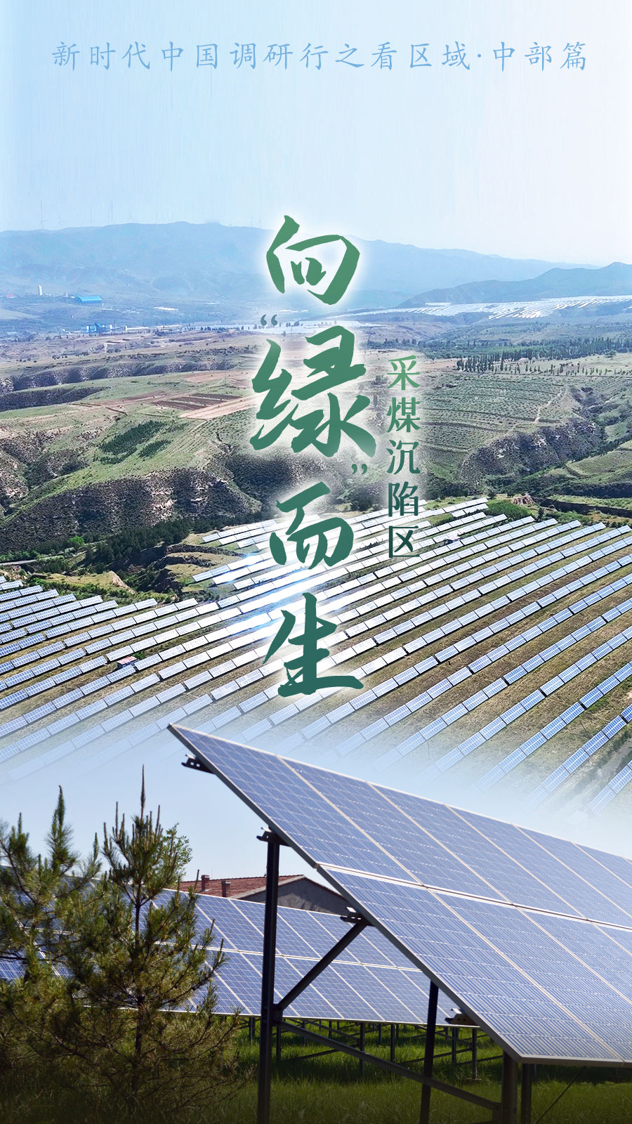 一片4.96萬畝的采煤沉陷區(qū)被郁郁蔥蔥的綠色植被所覆蓋,大大小小的山梁上橫亙著一排排的光伏板,蔚為壯觀,它們不斷將綠色能源送入電網(wǎng)體系。
