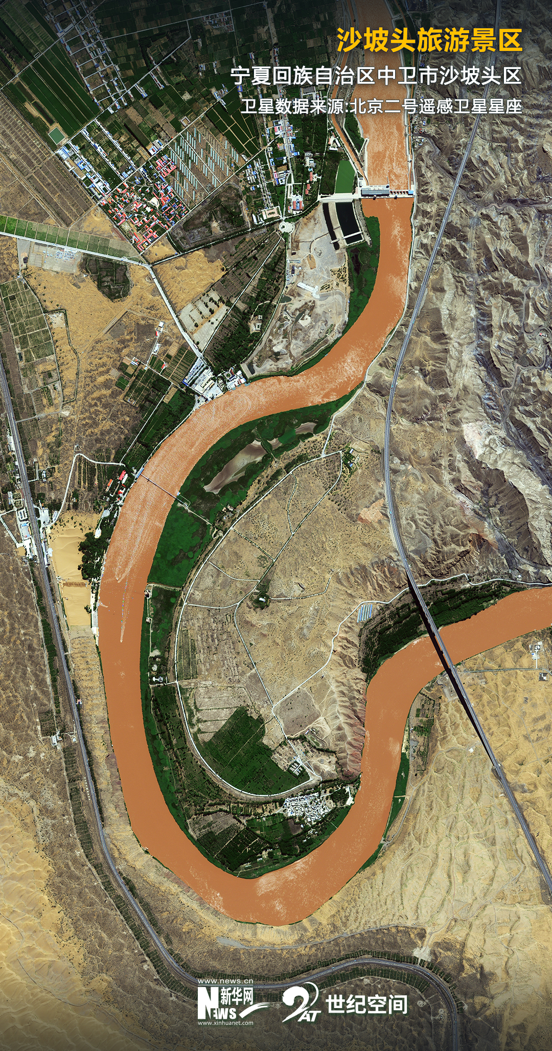 如今,在當(dāng)?shù)赜嘘P(guān)部門開展的水系疏浚工程影響下,這里成為沙漠濕地的聚集地。黃河流經(jīng)此地,畫出了一道蜿蜒的曲線。河的一頭是騰格里沙漠的無垠瀚海,另一頭被一抹蒼翠鑲嵌在河岸邊。