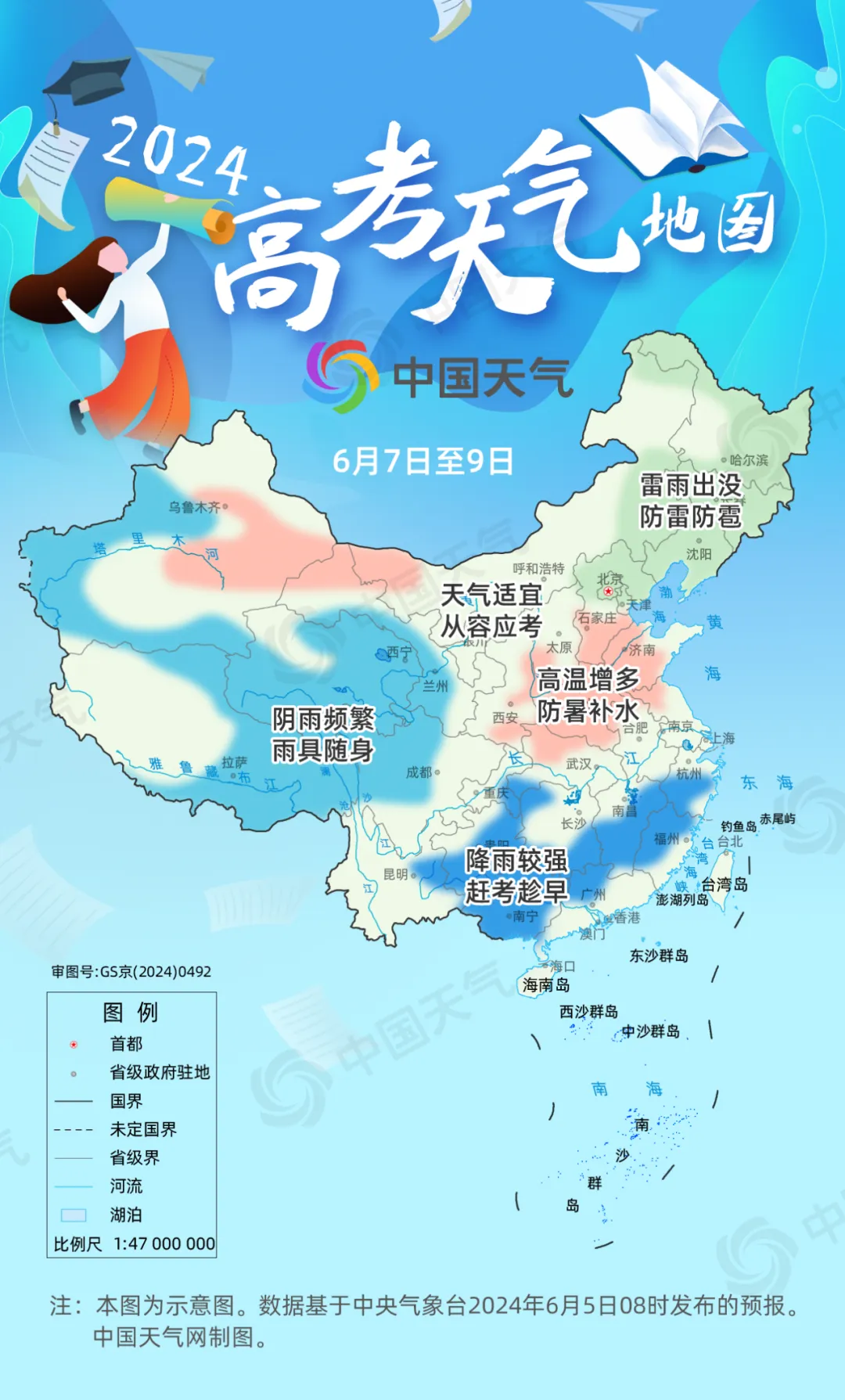 中央氣象臺預(yù)計,高考和端午假日期間(6月7日至10日),南方地區(qū)有較強降雨天氣過程。西南地區(qū)東部和南部、江南中南部、華南有中到大雨,云南、貴州、廣西、廣東、湖南、江西、福建等地部分地區(qū)有暴雨或大暴雨;上述部分地區(qū)伴有短時強降水或雷暴大風等強對流天氣。