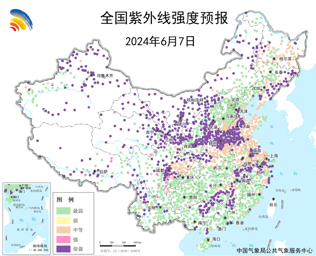據(jù)全國紫外線強度預(yù)報顯示,高考期間,華北、東北地區(qū)南部、華東地區(qū)中部和北部、華中地區(qū)中部和北部、西南地區(qū)東部、西北地區(qū)的部分地區(qū)及內(nèi)蒙古、新疆、西藏大部等地紫外線強度很強。北方大部地區(qū)紫外線較強,戶外陪考家長及考務(wù)工作者需注意防曬。