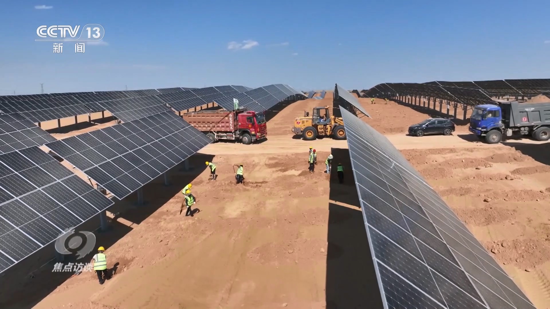 在內(nèi)蒙古庫布其沙漠北緣,一排排深藍色的太陽能電池板格外醒目??偼顿Y115億元、占地48.7萬畝、光伏裝機容量13GW的新能源基地正在加緊建設。這個新能源項目是鄂爾多斯市防沙治沙的重點工程。沙漠、沙地地廣人稀,蘊藏著巨大的風能、太陽能資源。內(nèi)蒙古自治區(qū)“跳出治沙看治沙”,實施防沙治沙和風電光伏一體化工程,統(tǒng)籌推進增綠、增能、增收,力求取得1+1>2的效果。