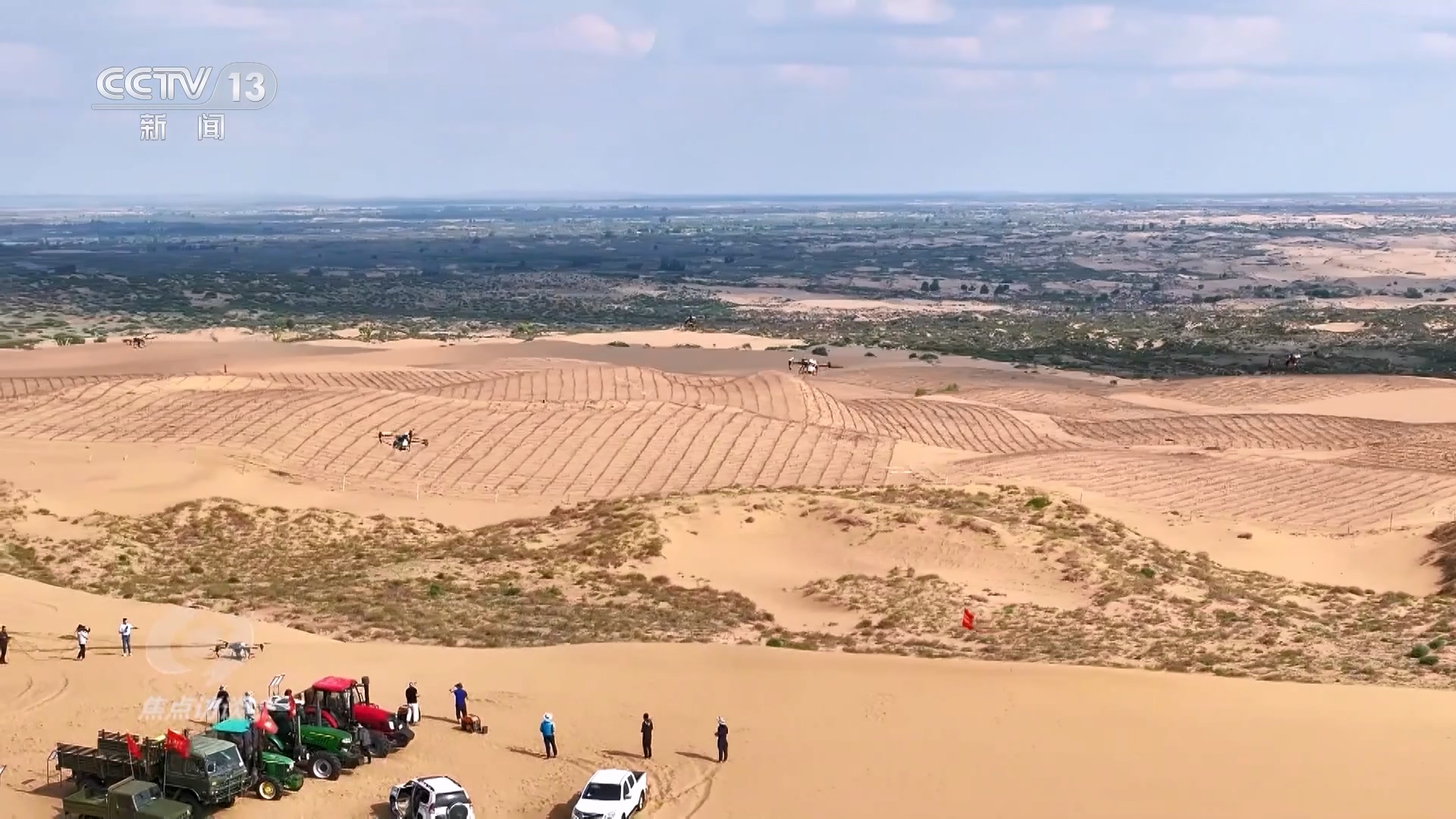 在距離地球約400公里的中國空間站,神舟十八號航天員看到,在三北區(qū)域,有一些像拼圖一樣很規(guī)則的綠色版塊,正在一點點向土黃色地帶鋪展延伸。
