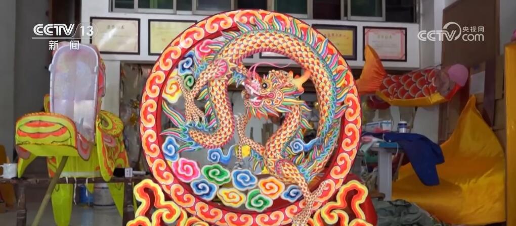 這件精美的龍燈彩扎藝術(shù)品,名叫《飛龍?jiān)谔臁罚怯煞沁z傳承人周合平歷時(shí)3個(gè)月完成的,馬上就要送往北京,收藏在中國(guó)非物質(zhì)文化遺產(chǎn)館。在這間扎龍工作室里,記者看到,大家正在趕制一批表演用的龍燈。