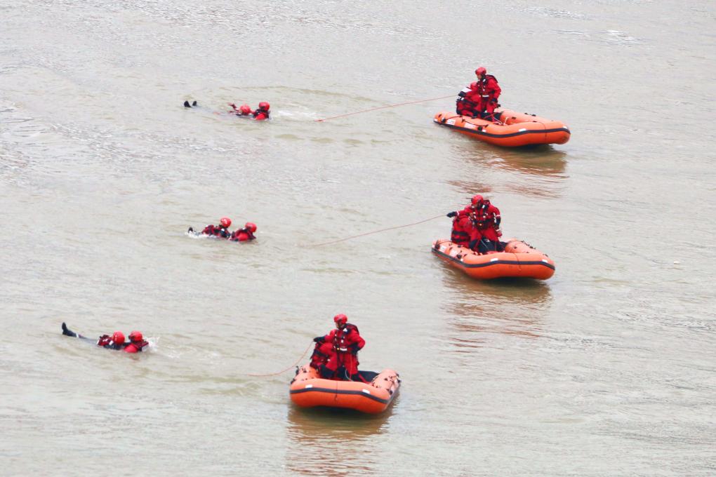 6月11日,梧州市消防救援支隊(duì)水域救援專業(yè)隊(duì)在廣西桂江流域進(jìn)行救援訓(xùn)練。(雷開偉 攝)