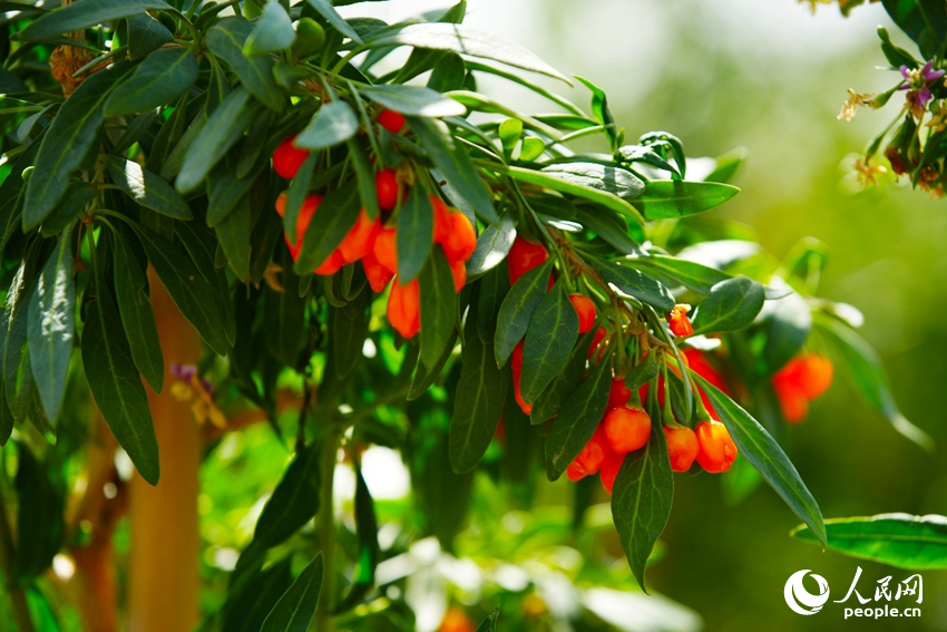 枸杞采摘園內(nèi)掛在枝頭的枸杞。人民網(wǎng) 周航攝