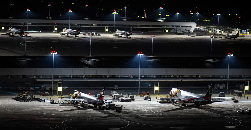6月2日凌晨拍攝的鄂州花湖國(guó)際機(jī)場(chǎng)停機(jī)坪一角。新華社記者 肖藝九 攝
