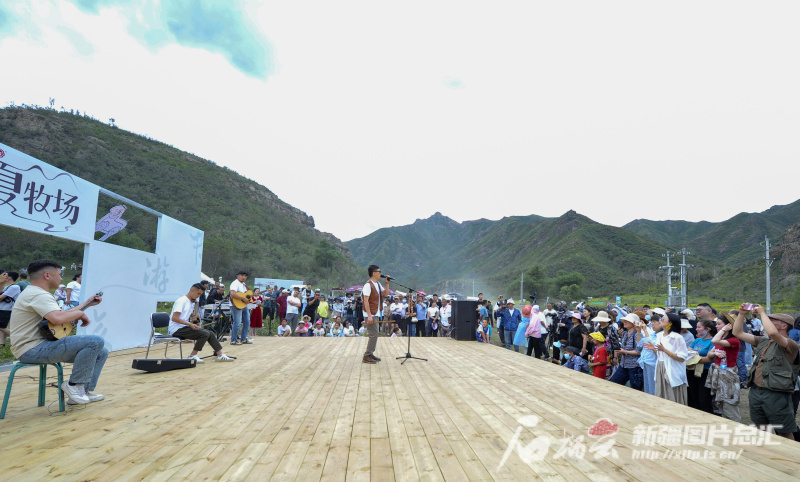 △6月15日,歌手為游客演唱歌曲。由烏魯木齊市水磨溝區(qū)主辦的夏牧場·游牧文化旅游節(jié)在石人溝蝴蝶谷景區(qū)啟動。互動體驗、游牧文化展演、刁羊等,讓游客沉浸式體驗游牧文化,感受大美風(fēng)光。石榴云/新疆日報記者 王禹攝