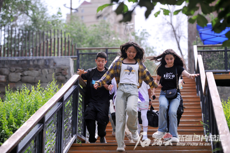 △6月15日,幾位中學(xué)生在烏魯木齊市水磨溝區(qū)水磨河濱河景觀帶玩耍。石榴云/新疆日報記者 秦梅花攝