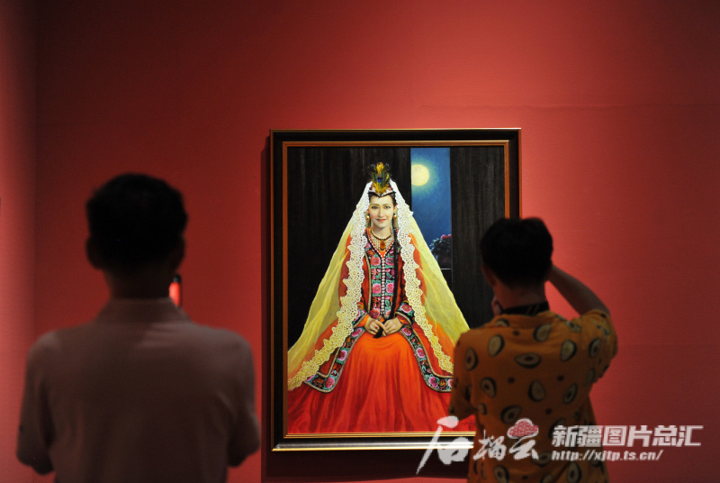 △6月15日,烏魯木齊市民在新疆美術(shù)館參觀畫展。石榴云/新疆日報記者 秦梅花攝