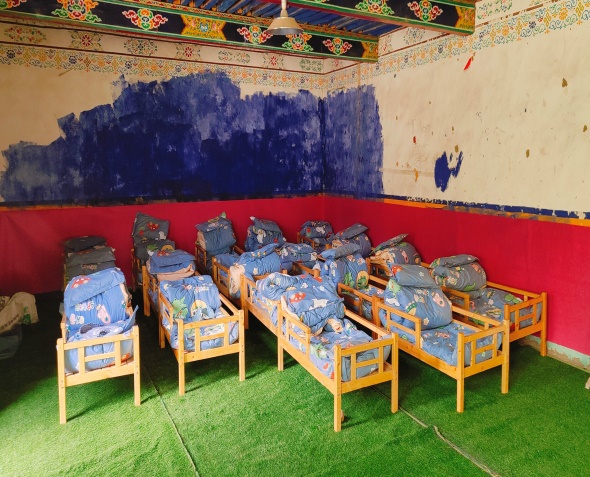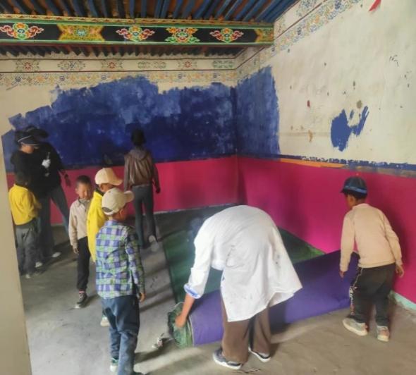 金點子,抓實干。自階段性入戶工作開展以來,駐西嘎村第十三批工作隊認真了解入戶時發(fā)現(xiàn)的村幼兒園改造未能推進的問題,現(xiàn)場走訪村幼兒園,排查村幼兒園用火、用電、用氣、食品衛(wèi)生安全隱患。在交談中,兩位教師談及幼兒園房間老舊、水泥地板凹凸不平,導致幼兒無法午休的問題,工作隊第一時間請示領(lǐng)導,現(xiàn)場勘察房間形狀與大小,駐村隊員自發(fā)購買并鋪就64.2平米防滑草坪地毯,以改善園內(nèi)22名幼兒生活環(huán)境,給孩子們創(chuàng)建了相對舒適、干凈的午休環(huán)境。村幼兒園教師次珍表示:“此次活動極大改善了孩子們的生活條件,感謝人行日喀則市分行駐村工作隊一直以來對村幼兒園工作的關(guān)心?!?/p>