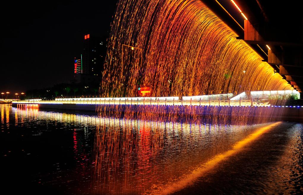 2014年6月22日,我正在河北滄州采訪,準(zhǔn)備吃晚飯時(shí),突然看到手機(jī)上顯示大運(yùn)河申遺成功的消息?;氐劫e館,我拿上相機(jī)就飛奔出去,來到清風(fēng)樓下的大運(yùn)河景觀帶,記錄下了大運(yùn)河夜色。