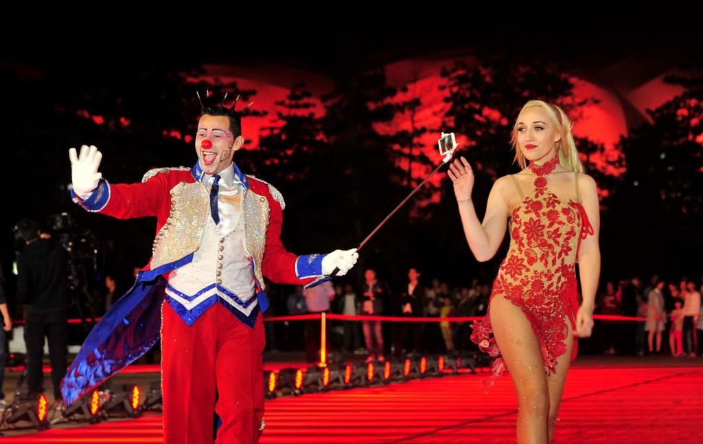 2015年10月7日,在第十五屆中國吳橋國際雜技藝術(shù)節(jié)閉幕式上,來自委內(nèi)瑞拉的表演者走紅毯。