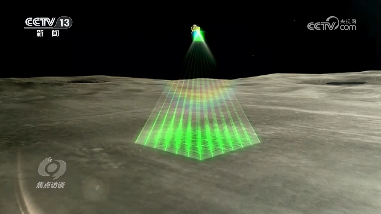 中國航天科技集團關(guān)軼峰:“在懸停的時候成像和障礙識別,然后進行規(guī)避,相當(dāng)于分兩部分,先眼睛確認,看一眼什么地方比較平坦,記住那個地方,然后把那個地方傳到腦子里,知道那是平坦的再移過去,在平坦區(qū)域上方再往下降?!?/p>