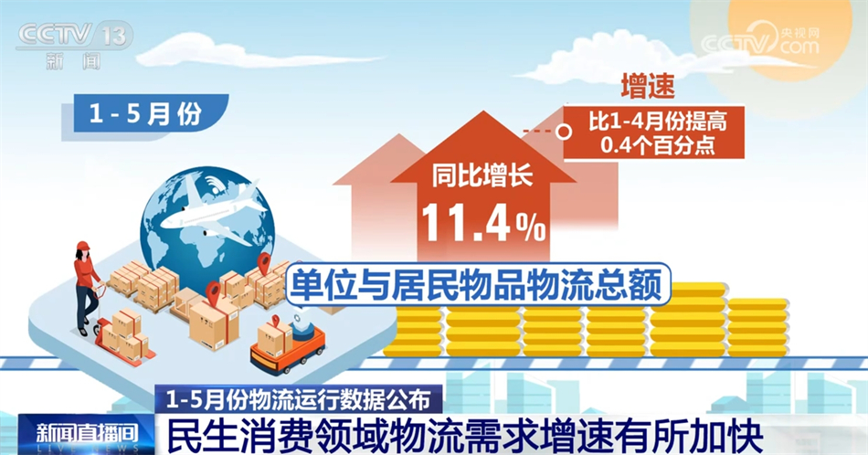 中國物流信息中心主任劉宇航表示,從1—5月我國社會物流運行情況來看,總體還是保持穩(wěn)中向好。從消費的情況來看,5月份以來整個消費活力比較強(qiáng),消費增速比較明顯。