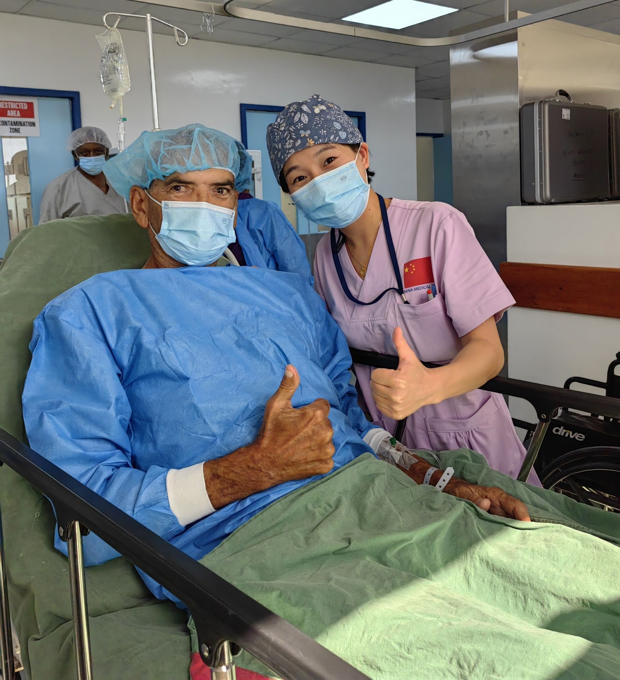 袁小舒:當(dāng)?shù)蒯t(yī)院由于資源有限,所以在腔鏡器械的組裝和手術(shù)配合上,當(dāng)?shù)刈o(hù)士不是特別熟悉。護(hù)士長聽說我有這方面經(jīng)驗,希望我能給他們提供幫助。憑借在國內(nèi)的扎實(shí)基礎(chǔ),我很快地熟悉了手術(shù)器械,重新組裝后順利使用。臺上的手術(shù)醫(yī)生在術(shù)后特別找到我表示感謝,說他們一定會記住這名中國護(hù)士,希望以后的手術(shù)我都能在。