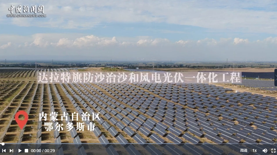 6月28日,“鑄牢共同體 中華一家親”主題宣傳活動采訪團來到內蒙古自治區(qū)鄂爾多斯市達拉特旗防沙治沙和風電光伏一體化工程。工程主要布局在庫布其沙漠和南部干旱硬梁區(qū),庫布其沙漠工程規(guī)劃總長133公里、裝機規(guī)模2700萬千瓦的“光伏長城”。達拉特旗光伏發(fā)電應用領跑基地位于“光伏長城”中部,基地采取“光伏+生態(tài)治理+有機農林+沙漠旅游”模式,種植紫穗槐、黃芩、黃芪等經濟作物。
