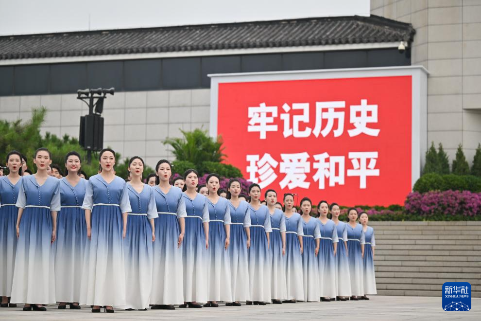 7月7日,首都大學(xué)生合唱團在紀(jì)念全民族抗戰(zhàn)爆發(fā)87周年儀式上演唱。新華社記者 李響 攝