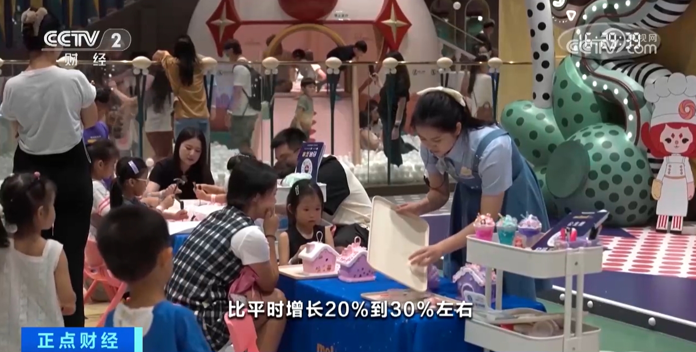 某室內(nèi)游樂場(chǎng)深圳一方天地店值班經(jīng)理麥麗勤介紹:“比平時(shí)增長(zhǎng)20%至30%左右,因?yàn)楹⒆觽兎偶倭?,家長(zhǎng)們也有空帶孩子們過來玩?!?/p>