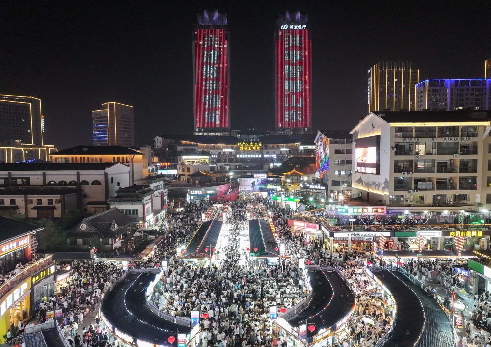 7月14日,游客在南京夫子廟景區(qū)游覽(無(wú)人機(jī)照片)。新華社發(fā)(楊素平攝)