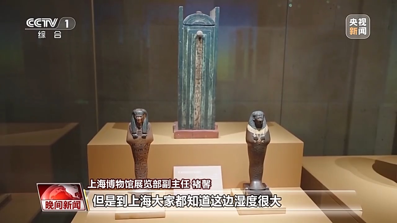 上海博物館展覽部副主任 褚馨:埃及的天氣比較干燥,它保存得特別好,但是到上海大家都知道這邊濕度很大,我們對(duì)它還進(jìn)行了脫蟲的處理,全部處理好了以后,才放到恒溫恒濕的展柜當(dāng)中。
