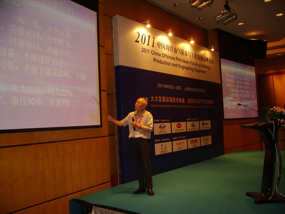 2011年,方華燦在上海參加中國(guó)海洋油氣鉆采與工程裝備高峰論壇時(shí)作學(xué)術(shù)報(bào)告。新華社發(fā)