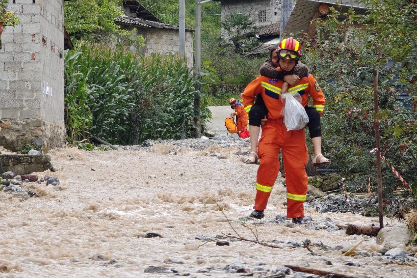 山洪過后,到處都是石頭、泥灘,救援隊伍只能走河床、山地、玉米地,還要穿過花椒林;當不能兩人并排抬時,就一個人往前一點點送。