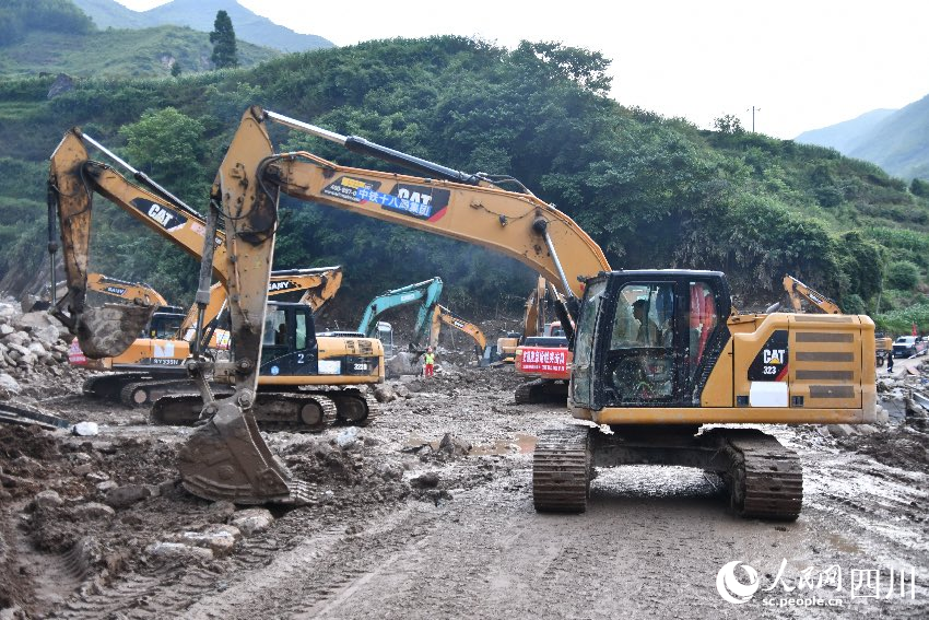 目前,挖掘機、裝載機和運輸車輛在新華村不停穿梭,數(shù)十臺機械同時作業(yè),各項搶險救援工作仍在繼續(xù)進行。