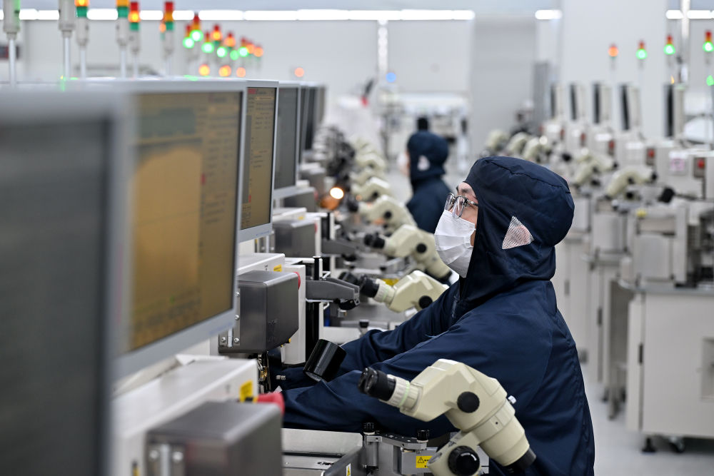 7月26日,湖南越摩先進半導體有限公司工作人員調(diào)試引線鍵合設備。新華社記者 李鑫 攝