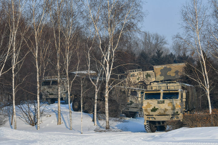 聯(lián)勤保障部隊(duì)某汽車運(yùn)輸旅運(yùn)輸分隊(duì)開展戰(zhàn)地駕駛課目訓(xùn)練(2024年1月2日攝)。新華社發(fā)(趙佳慶 攝)